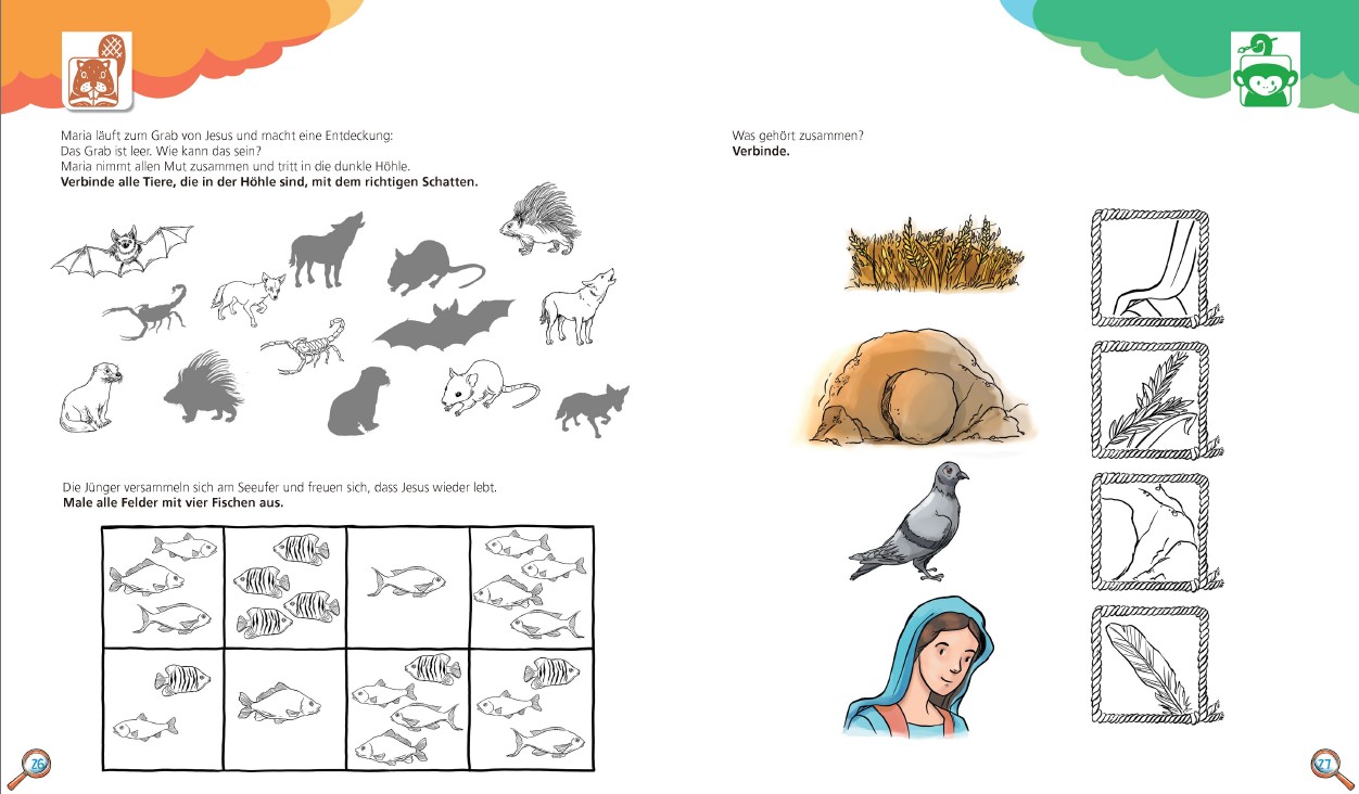 Auf 32 farbenfrohen Seiten gibt es viel zu erkunden! Spielerisch und kreativ lernen Kinder erste biblische Inhalte kennen und vertiefen sie ganz nebenbei.